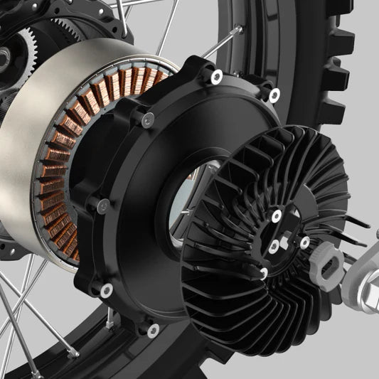 Our two electric motors are located in the hub of each wheel. This means no chains, less noise, and no heat. The brushless DC motors are designed to handle tough off-road conditions with air cooling, sealed bearings, and fully splined gear interfaces.